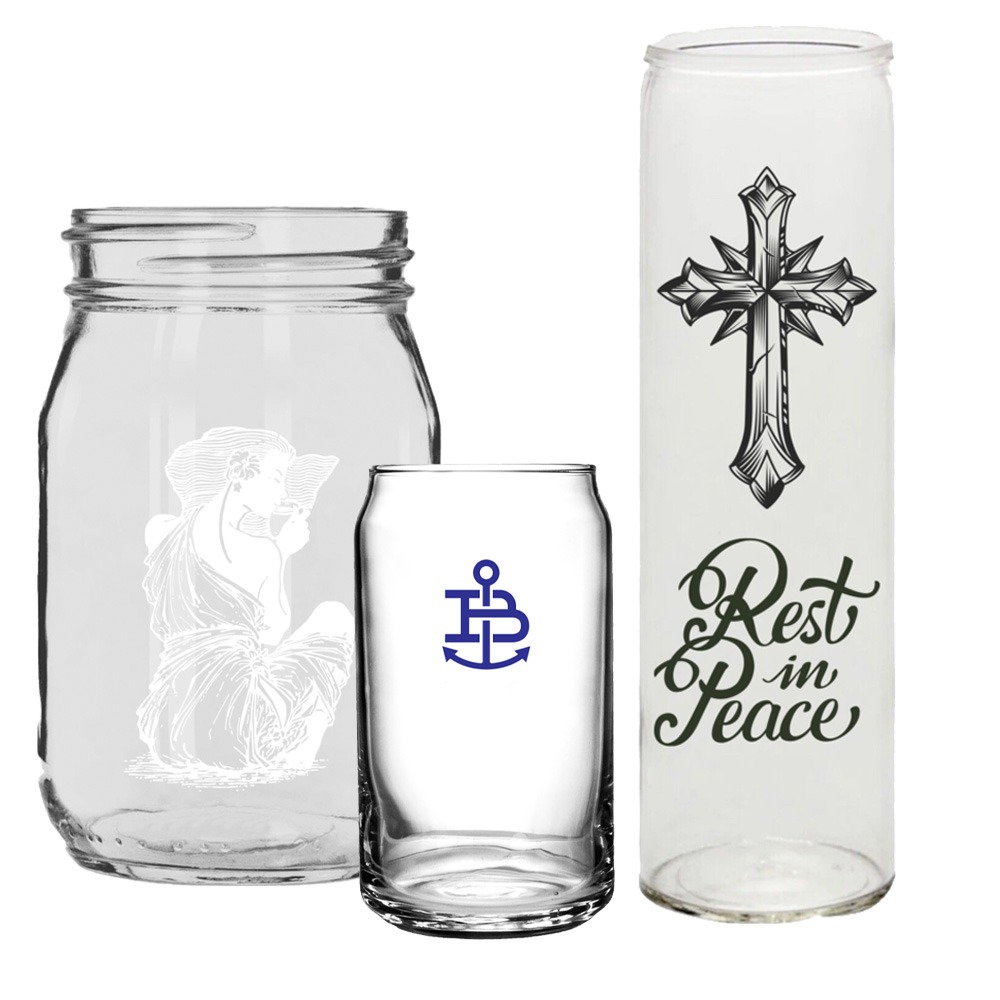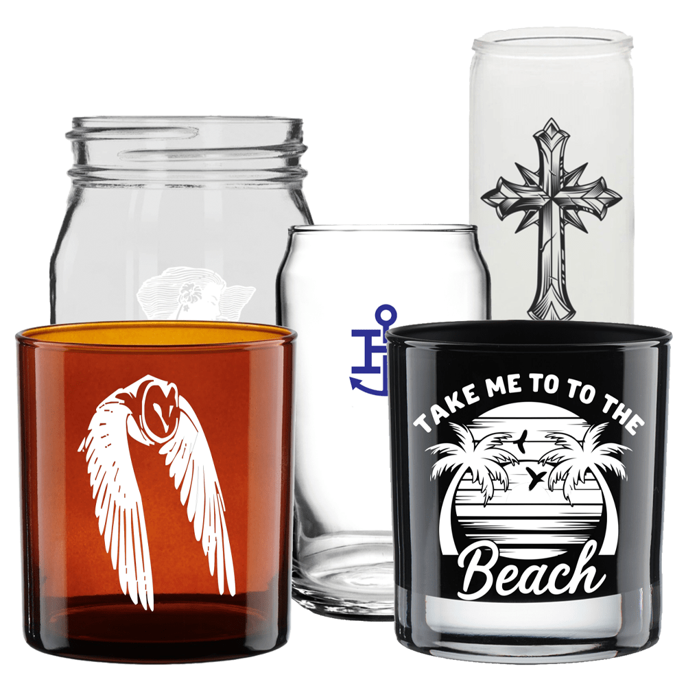 We offer a variety of glass candle containers — all available with 1–4 color custom screen printing, fast turnaround, and friendly, personal service.